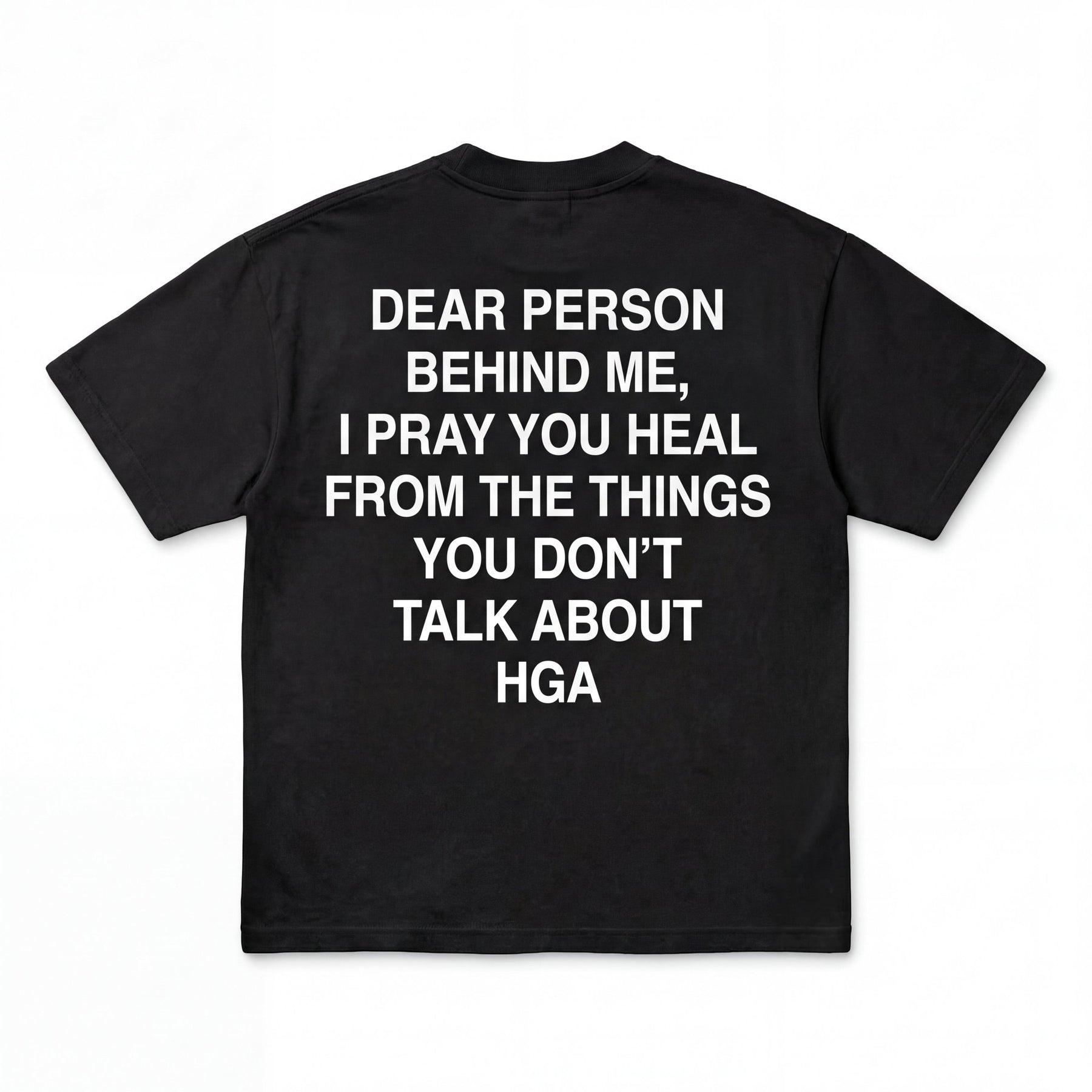 “Dear Person Behind Me, I Pray You Heal From the Things You Don’t Talk About” transforms this tee into a moving prayer for the unseen battles people carry. Simple yet powerful, it reflects the heart of Christ—near to the brokenhearted and full of compassion.